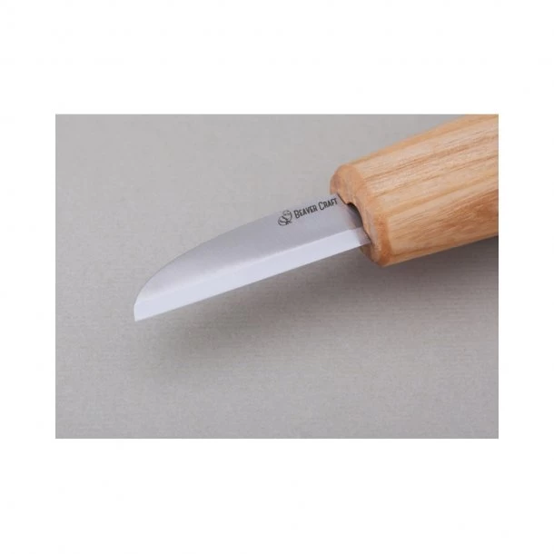 Denne snittekniv fra BeaverCraft er lavet i kulstofstål, som er et specielt knivstål, der gør, at den er rigtig god til diverse snitteopgaver. Grundet dens skarphed kan du både arbejde i hårdt og blødt træ. Kniven er velegnet til både højre- og venstrehåndede og desuden også børn pga., at spidsen er afrundet. Derudover er kniven behagelig at have i hånden, så det ikke er hårdt at snitte selv efter flere timers brug.