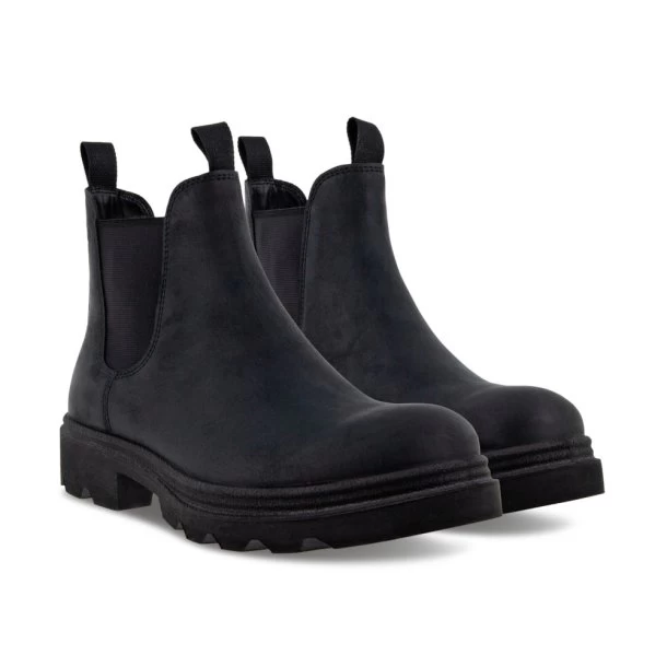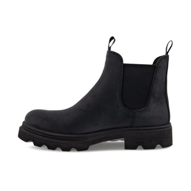 ECCO – Grainer Chelsea Herre Støvler er en Ideel støvle til hverdagen og byen, lavet af det lækre nubuck læder. Læderet er fremstillet med ECCOs DriTanTM metode, hvilket betydr at der bliver brugt mindre vand og kemikalier end der gennemsnitlig bruges i lædergarvningsprocessen. Støvlen er udstyret med ECCO FLUIDFORMTM , som betyder at du får en anatomisk støttende platform. For ekstra komfort og en nem af-og påtagning har skoen elastiske forstærkede sider. Støvlen har en robust gummisål, så du kan have godt fodfæste til de forskellige vejrforhold.