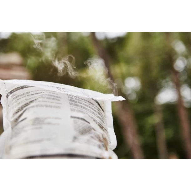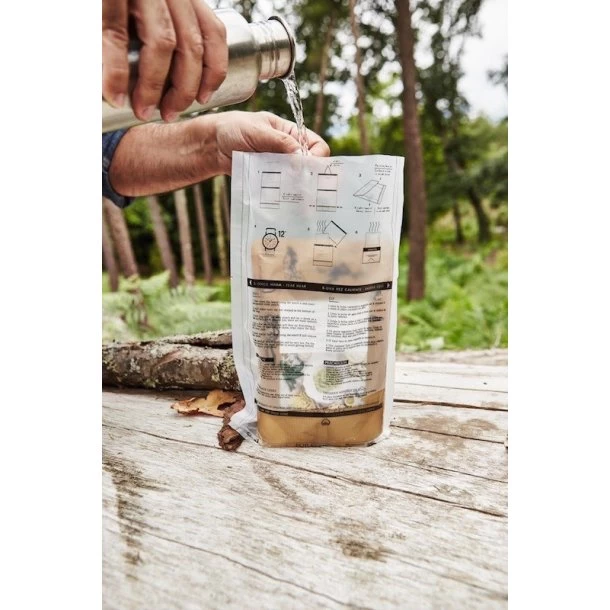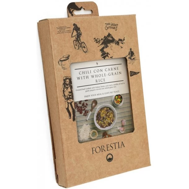 Lækker chili con carne ret serveret med fuldkornsris. Nem og hurtig at tilberede ude i naturen. Tilsæt blot koldt vand, og den medfølgende varmepose sørger for at tilberede din mad, så du hverken behøver potter, pander eller åben ild. Det er en nem og praktisk løsning til outdoorentusiasten, så du let kan spise en dejlig, varm ret under åben himmel.