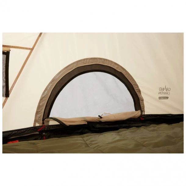 Black Knob 10-personers telt fra Grand Canyons store indgange tilbyder stor alsidighed, og de kan åbnes samtidigt for at gøre teltet til et åbent shelter om dagen. Teltet tilbyder god plads til 10 personer, og det er udstyret med myggenet, der lader lys og luft trænge ind i teltet.