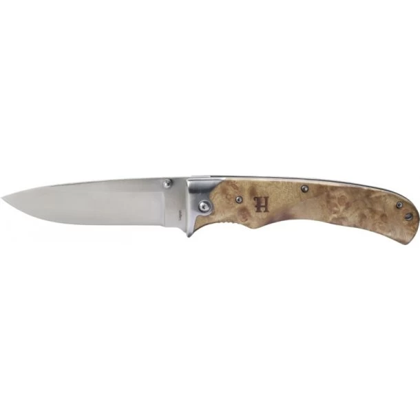 Lagan Lommekniv fra Härkila er en meget let foldekniv, der kan betjenes med én hånd. Kniven er elegant i udformningen og har et dekorativt lyst træ-skæfte. Den er med sidelås og utrolig let at rengøre, hvilket er en fordel, da Lagan er velegnet til behandling af fødevarer. Bladet fremstår i 100% rustfrit AUS-8 stål, der er utroligt stærkt. Grebet er 100% ahorntræ og skeden er hurtigtørrende nylon.