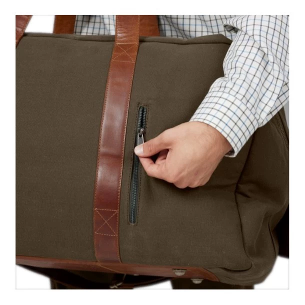 Härkila – Weekendtaske 65L er en fremragende taske til når du skal på weekendtur – den kan holde til meget da den er lavet af det kraftige og slidstærke kanvasstof, og har håndtag, justérbar bærerem og aftageligt navneslit som er lavet af kvalitetslæder. Derudover er Härkila – Weekendtaske 65L med en elstastisk spænderem med kliklås, og har flere forskellige størrelser lommer, så du kan organisere dine ting. Tasken kan lynes fuldstændig op, så det er nemt at pakke ting ned i den og bevare overblikket i din taske.