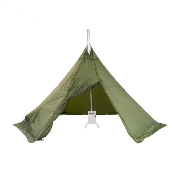 Yderteltet har en stor og bedre indgang med myggenet, som kan justeres for øget ventilation og dermed et bedre indeklima. Der er mulighed for at bruge en brænder eller teltovn inden i uden bekymring for, at der går ild i yderteltet, da det er udviklet i flammehæmmende materialer.