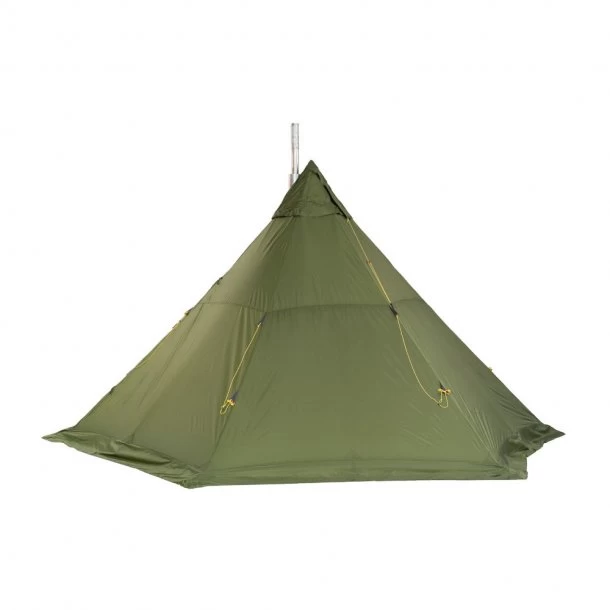 Pasvik 4-6 Ydertelt inkl. Stang fra Helsport er det letteste lavvu, som er kompatibel med brænder eller en teltovn. Yderteltet er ideel til dem, der gerne vil længere med så lav vægt i rygsækken som muligt og med så meget komfort og egenskaber som muligt.