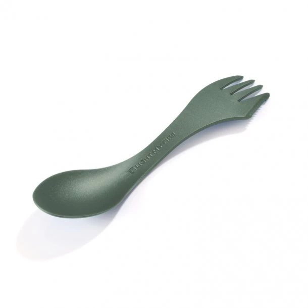 Smart tre-i-en bestik som fungerer som kniv, gaffel og spiseske. Denne Spork er fremstillet i biobaseret plastik som kommer fra GMO fri majsplanter. Den kan bruges direkte på teflon og tåler maskinvask. Med en vægt på 9 gram, så er den supernem at pakke med på turen.