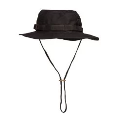 US Boonie Hat fra Mil-Tec som nemt kan justeres til hovedets form via remmen. Rundt om hatten sidder der webbing remme, så man kan påsætte mere camouflage hvis det kræves. Øverst, til hver side, findes der huller til ventilation.