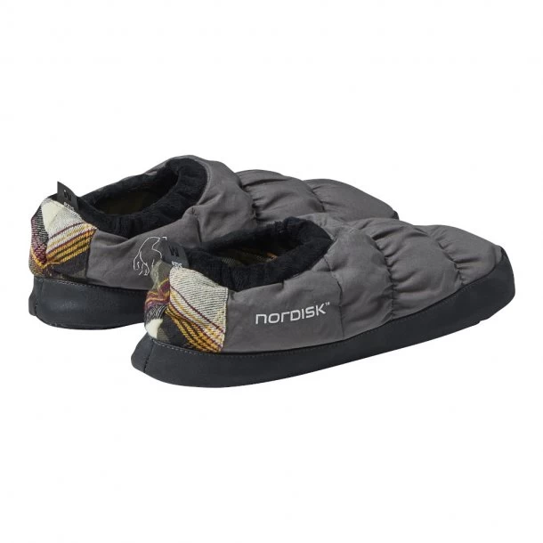 Hermod Dun Teltsko fra Nordisk er meget bløde og varme dunsko. De hjælper med at holde dine fødder varme, uanset om du er inde eller ude. Skoene besidder en isolerende sål, en hårdfør skal og er fyldt med bløde europæiske dun, hvorfor et par teltsko nemt holder dine fødder varme.