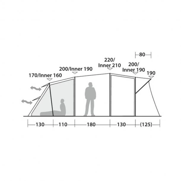 Teltet er udstyret med dobbelte lavtsiddende ventilationskanaler på bagsiden, som styrer luftcirkulationen. Disse optimeres vha. netpanelerne, som sidder bag de ydre døre, hvilket giver ventilation og holder uønskede insekter ude.