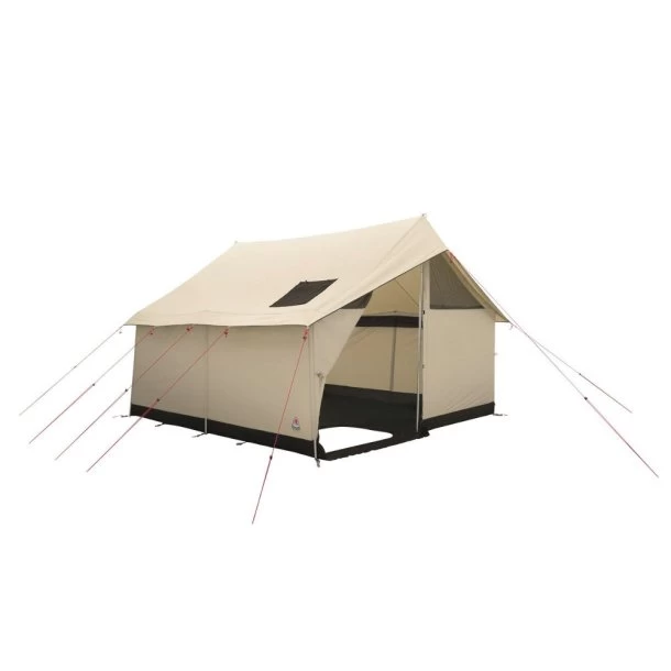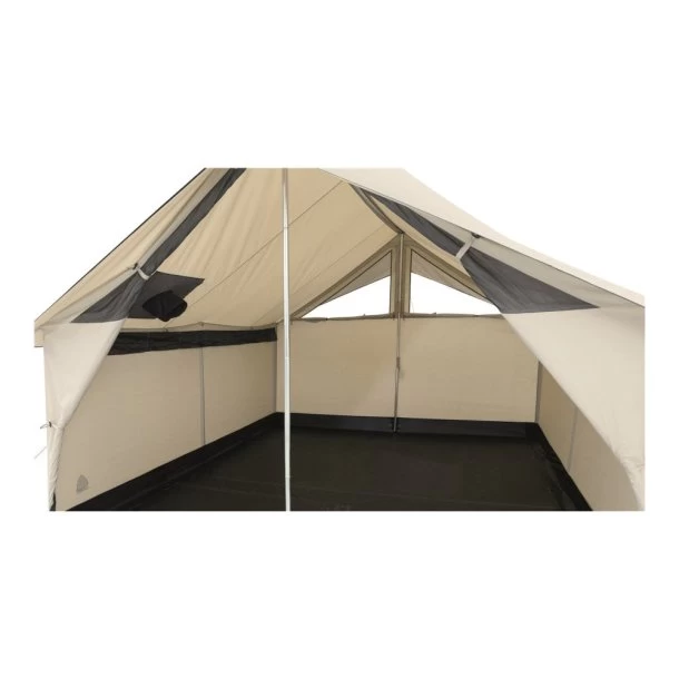Cabin teltet’s sidestænger sidder med vilje udvendigt på væggene for nem opsætning, når tiden er inde på turen. Cabin teltet er desginet i et flot retrolook med en masse praktiske egenskaber såsom en skorstensåbning og en lynlås i den isyede teltbund, hvorfor du sikkert kan placere et komfur (købes som ekstraudstyr). Hertil kan det anbefales at tilkøbe et fempersoners indertelt, som giver privatliv og beskytter mod træk.