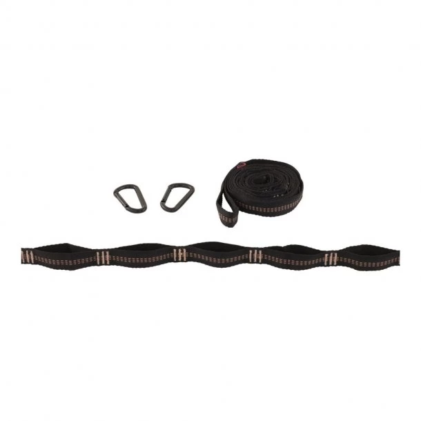 På pakkeposen finder du stropper, som kan bruges til ophængning. Disse er udviklet med refleksdetaljer, hvorfor hængkøjen bliver mere synlig om natten. Derudover gør stropperne det nemmere at montere denne uden på din rygsæk.