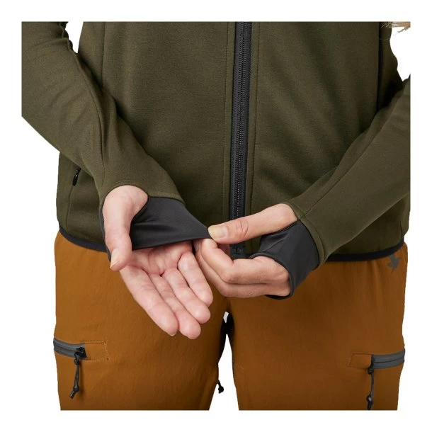Fleecetrøjen har, som nævnt, en tæt pasform, som følger alle kroppens bevægelser, når du er aktiv. Derfor vil du også opleve, at det bliver din go-to trøje, når du hurtigt skal tage noget på. Fleecetrøjen er udviklet med to frontlommer med lynlås og tætomsluttende manchetter med hul til tommelfingrene.