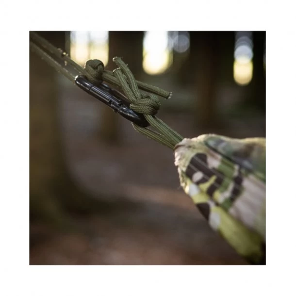 Jungle Hængekøjen er utrolig nem at hænge op, og leveres med to karabinhager i stål, så du nemt kan justere både længde og højden med ophængningsudstyret. Hængekøjen er let i vægt med en lille pakstørrelse, og leveres med en praktisk pakpose. Kan holde op til max. 180 kg.