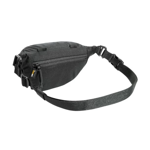 Moderne modular hoftetaske med et MOLLE krog-og-løkke hovedrum, en lille frontlomme og en ekstra lynlåslomme på siden. Låget har en laserskåret MOLLE strimmel. Bæltet er aftageligt, og de indbyggede kroge giver dig mulighed for at fastgøre tasken til eksempelvis et udstyrsbælte.
