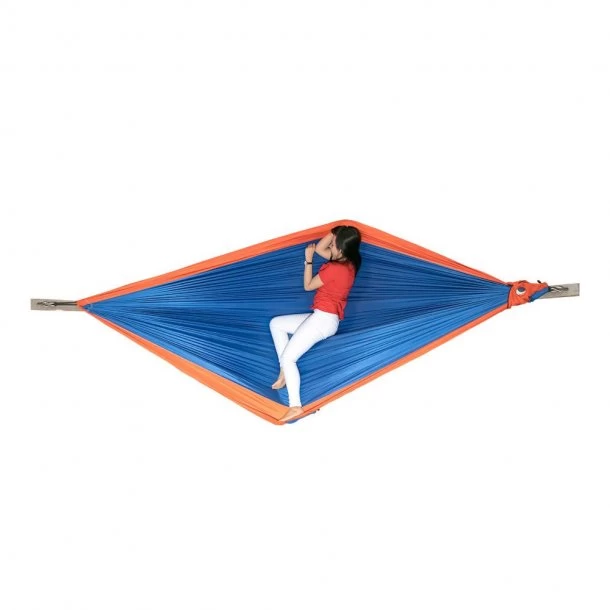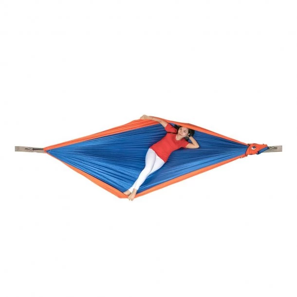 King Size Hængekøje fra Ticket To The Moon er udviklet til brug i alle slags klimaer, hvor det også ofte er svært at opsætte en hængekøje. Denne model er fremstillet i nylon, som også bruges til faldskærme, som gør den let, slidstærk og ikke mindst holdbar. Hertil former King Size Hængekøje fra Ticket To The Moon sig også efter din krop, hvorfor den er ekstra komfortabel at ligge i.