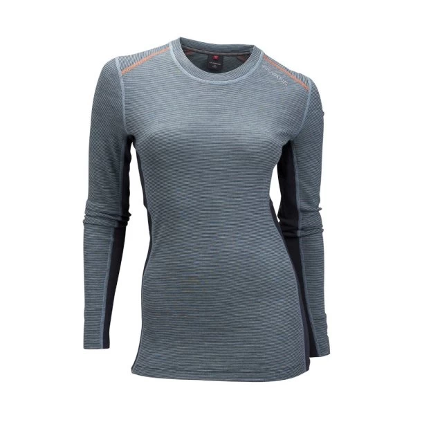 Ulvang – Rav 100% Dame Rund Hals Uldtrøje er en langærmet t-shirt fremstillet i 100% Merione uld. Specielt egnet til varierende aktiviteter. Fremstillet i super blødt materiale der er temperatur regulerende og naturligt lufthæmmende. Den holder sin formog de lodrette kanaler bidrager til at holde varmen luft invendigt. Flade sømme for bedre komfort og lavet i klasisk timeglas design der passer til næsten alle aktiviteter.